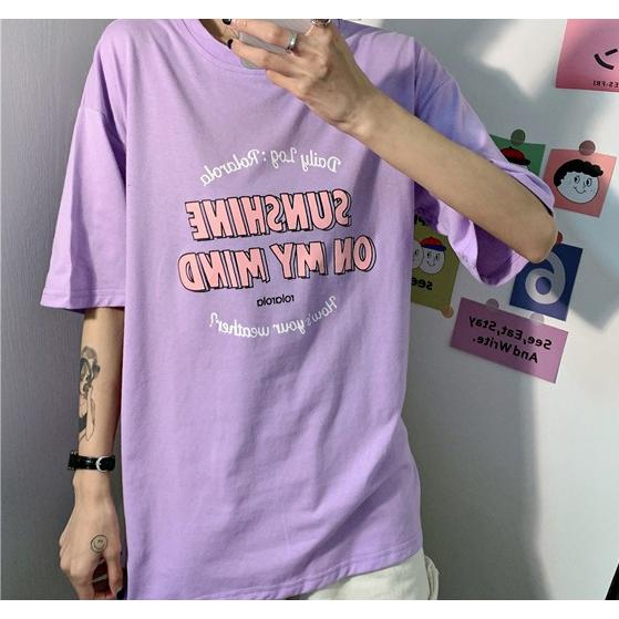 Amazon Dokuichigo 半袖 Tシャツ レディース かわいい 安い 韓国ファッション オルチャン 原宿系 夏 パープル Tシャツ カットソー 通販